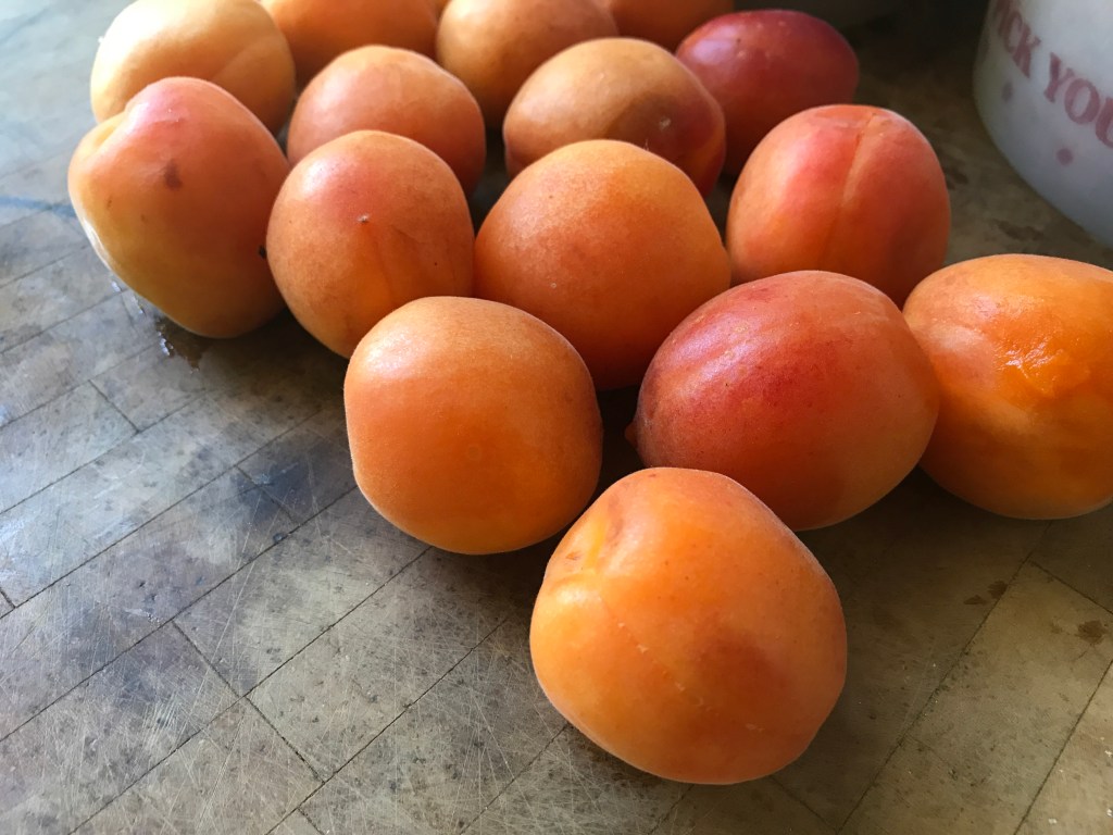 The apricots were soft, and the pits were easy to remove. I almost didn’t need a knife: the velvety skin opened readily, and the pits practically fell out.