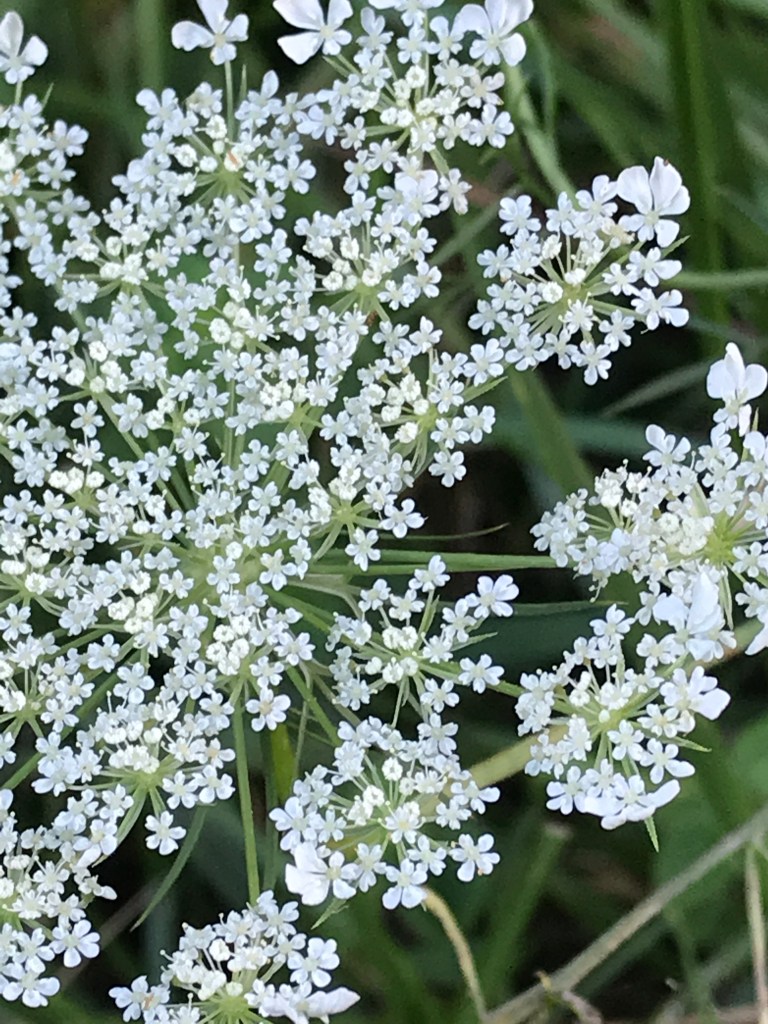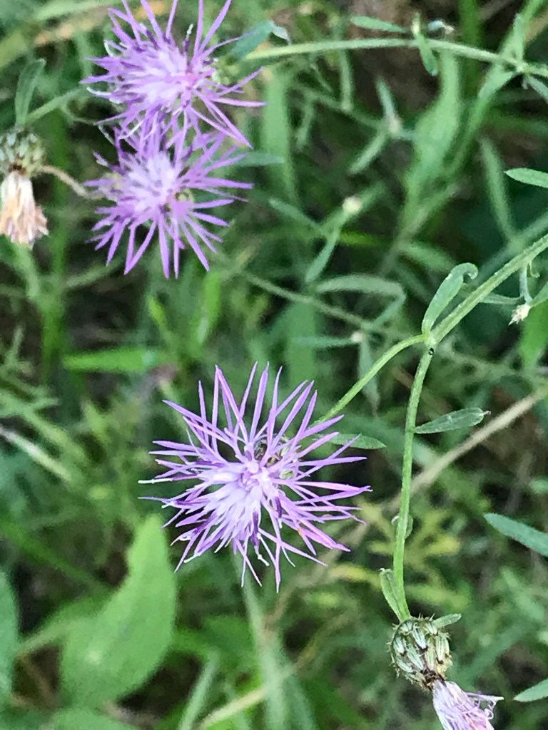 Being released from the tyranny of the heat and insects allowed me to enjoy the walk in a more open way. I was able to appreciate the meadow flowers along the trail that I usually march past: black-eyed Susan, Queen Anne’s lace, and spotted knapweed. The sky began to turn that beautiful evening cornflower blue and dusky lavender, the clouds hovered slowly, and the waxing half moon began to shine brightly. I felt a rush of freedom that only a walk seems to give–what is it? Freedom from the borders of consciousness, I guessed.