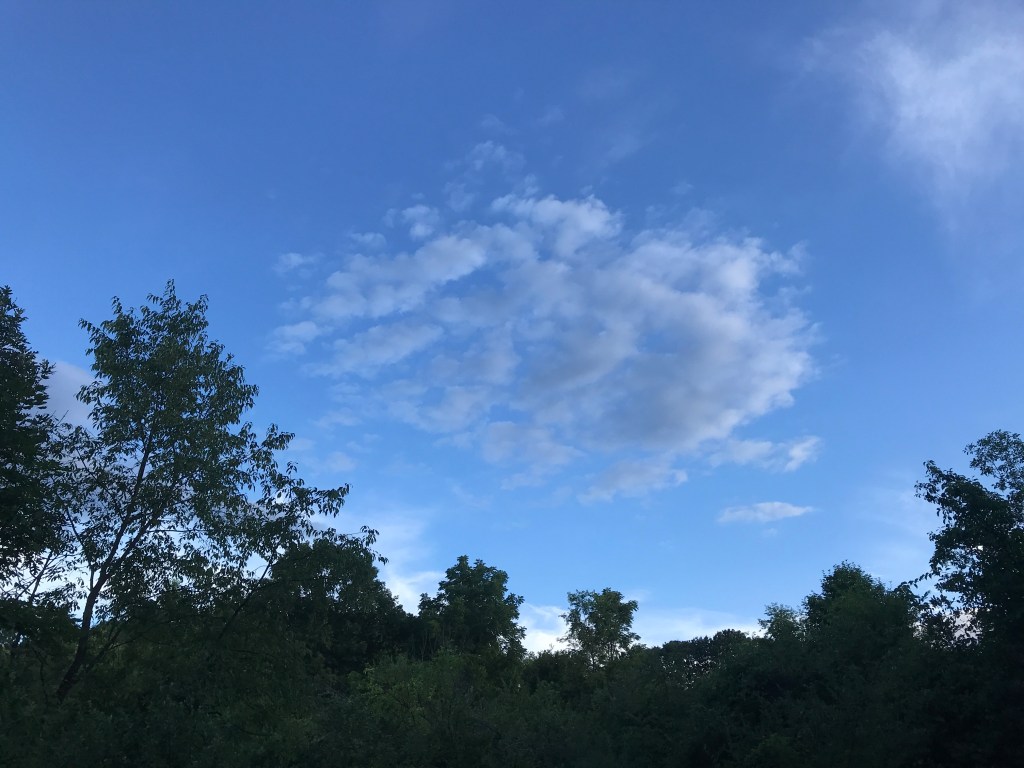 Last night the air seemed to cool quickly where I walked. I wasn’t expecting it at all–I planned on a hot sweaty walk where getting back to the car would be a welcome respite. It was certainly still hot, but a breeze mixed up all the hot air so much that my bare shoulders remained cool. There’s something about extreme temperatures that makes you aware of your body in a different way. The breeze also is great at keeping the bugs at bay.