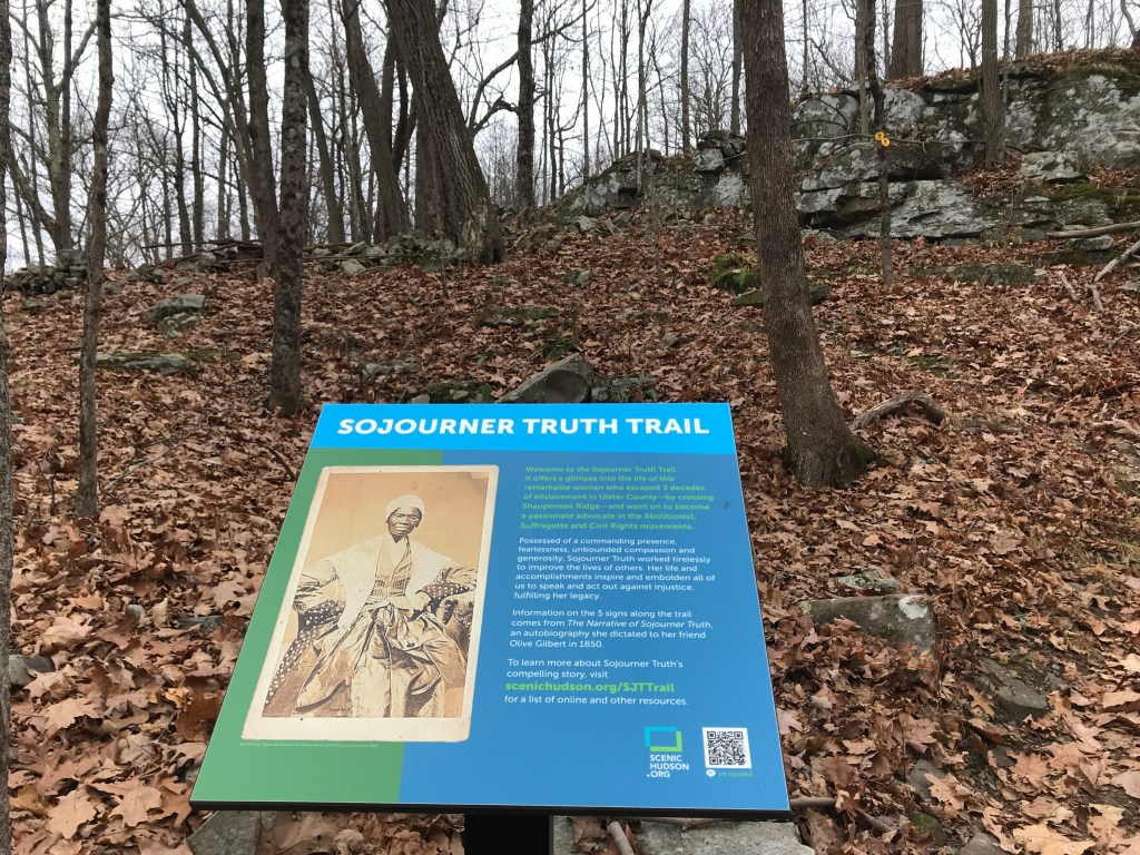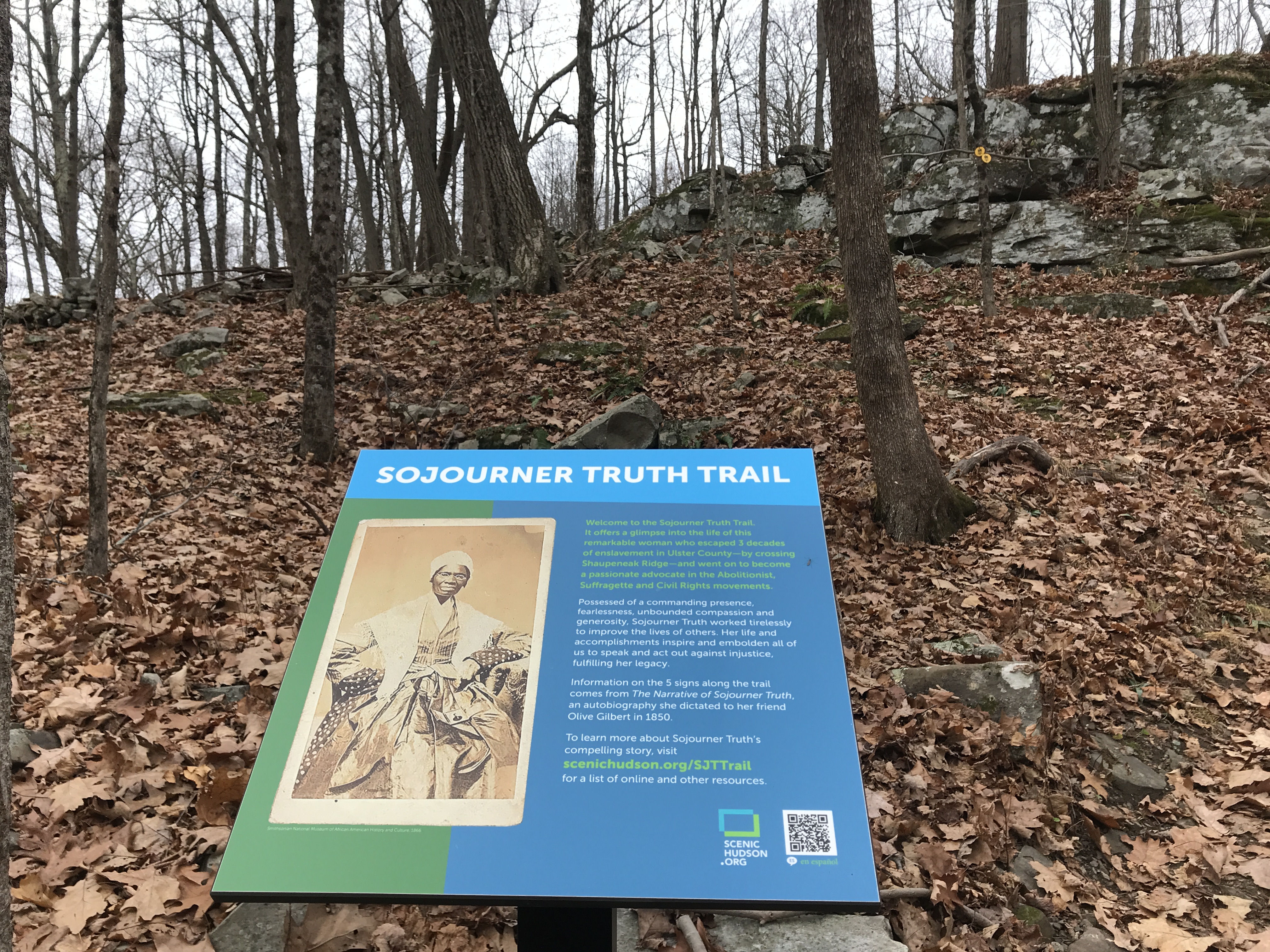 There was another reason why I was motivated to walk up the mountain this particular week, and that was as a remembrance of Sojourner Truth. She had walked down this side of the mountain while carrying an infant in her walk to freedom. I felt impossibly privileged as I walked up in my hiking sneakers and down jacket. Once at the top, I went on the newly named Sojourner Truth Trail where Scenic Hudson had installed signs commemorating her life. The 26th, this Thursday (which falls on Thanksgiving this year), is the anniversary of her death, and a group of young activists have officially made this Sojourner Truth Day in Ulster County. I reflected on her strength and power as I walked down the mountain. This was just a small sliver of her 11.5 mile walk–one day I hope to walk the whole length.