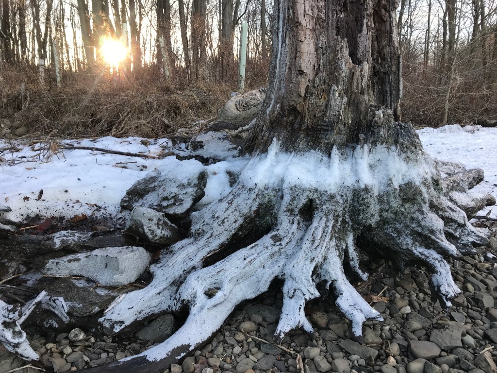 I knew this week would be “a week,” but I wasn’t quite aware of what a week it would be. It’s truly making this time unique, to say the least. As always, the quiet contemplation of walking provides clarity. Space to breathe. You never quite know how much you need a walk outside until you get outside and walk. Only a few minutes in the cold air and you can see so much more clearly. I saw the waning afternoon light hitting a river birch overlooking the Hudson River. And looking west, I saw this tree’s roots covered in tidal frost as the sun lowered through the trees.