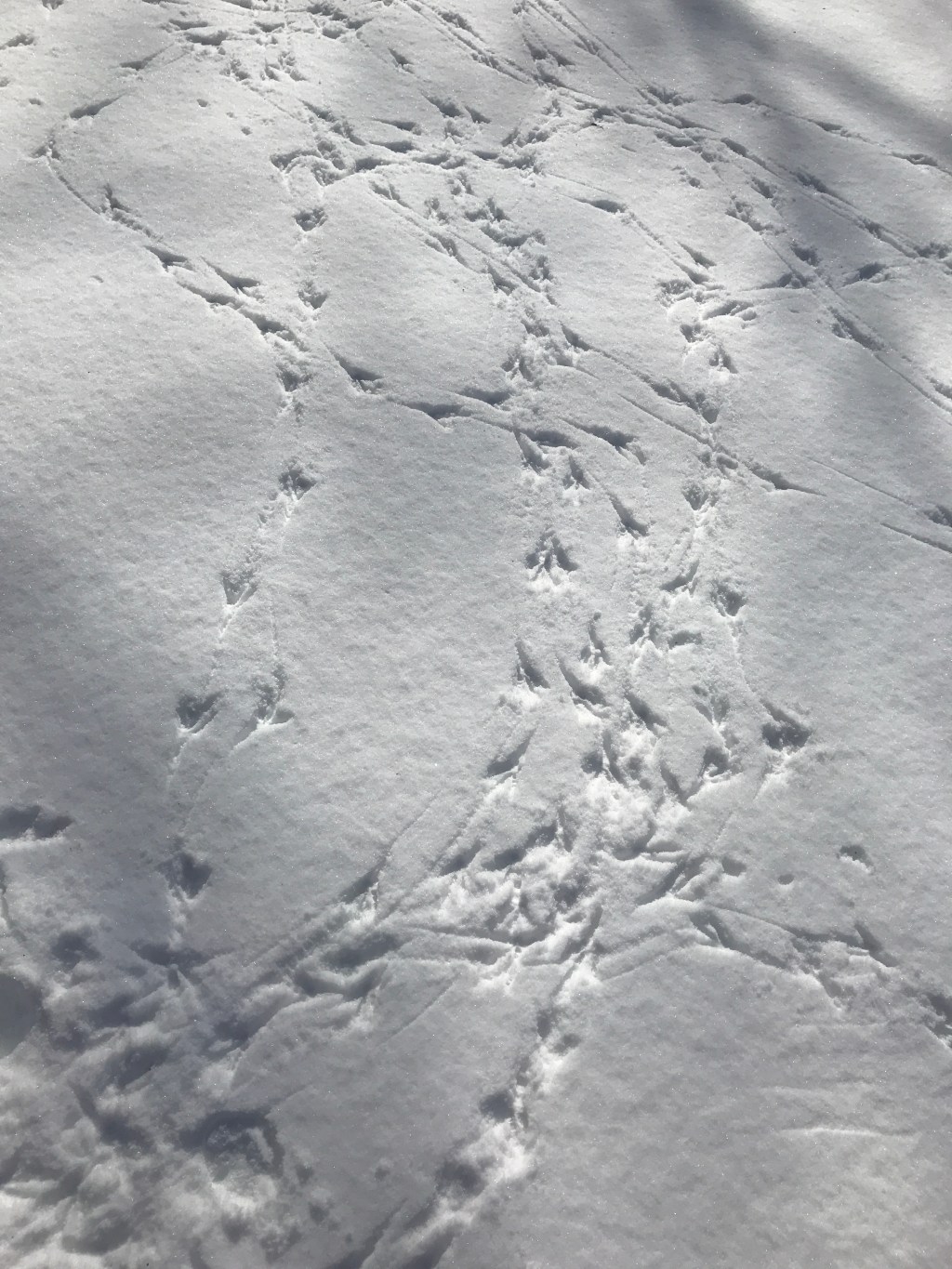 These days, I listen to the flocks on the hill from my house: the sounds are varied and sometimes surprising. I’ll think: was that really a crow? They are very wary, and if I come too close they’ll fly away en masse moving just enough to have a certain distance from me. After it snowed most recently, the hill had millions of little crow foot prints stitched on the surface. They were like hieroglyphics that showed their dancing moves– curious, impetuous steps. There were wing prints too, as they hop around they flap their wings leaving those long fingertip marks in the snow. It was like a short story written in crow’s feet.