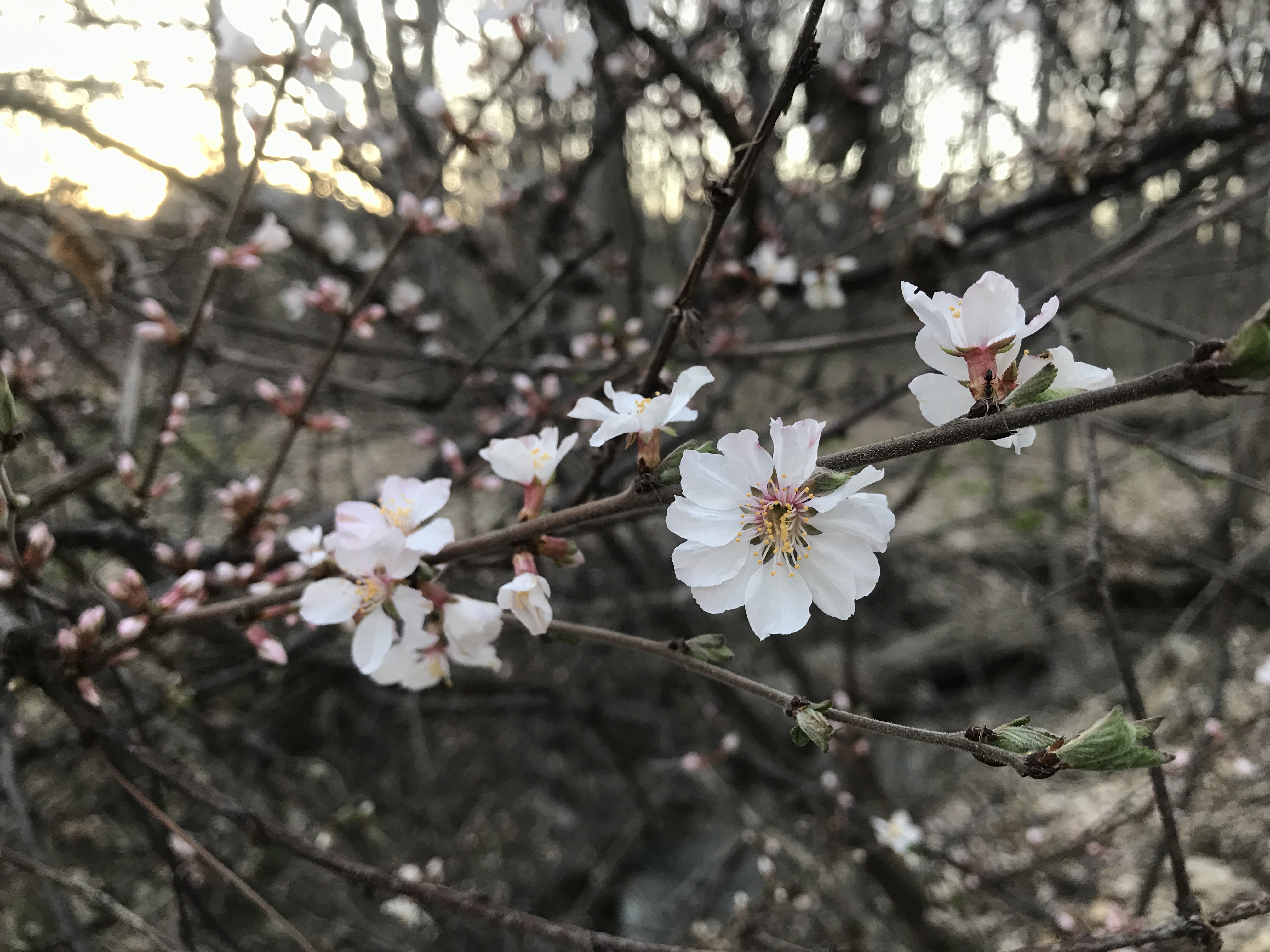 I am sitting outside, and the flies swarm around my head. They are easily brushed away, and thankfully they’ll only be around for two weeks. The cat walks by, glad of spring as well. A branch fell from the sugar maple, and I have it on my table to admire: big chartreuse buds that have opened to release these tiny pom pom flowers. So intricate! Meanwhile, the rhubarb’s substantial leaves are stretching out, the forsythia is a bright cloud of yellow, and in the distance the trees are filling out with a slight haze of greens and reds. The Hansen’s cherry bushes I planted so many years ago are studded with pale pink blossoms. It all makes the heart glad.