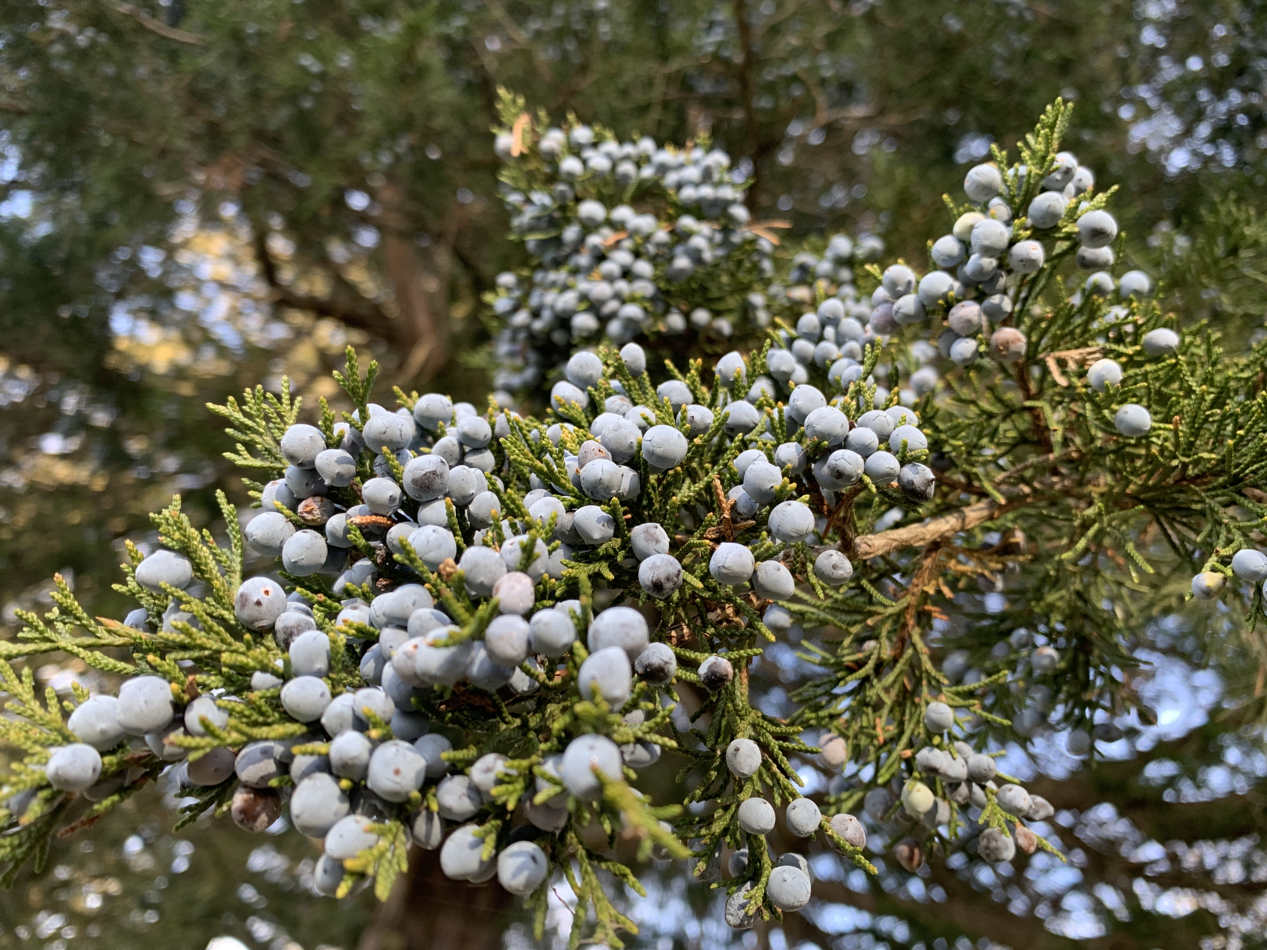 Today the sky is that pale winter blue, and the sun is bright. There is no breeze, and it feels still and warm. It was a gentle afternoon as I walked around a very old cemetery in town. You could see the blue haze of the mountains here and there, and the sun slanted on the old gravestones. The trees here are majestic, allowed to grow as big as they want without competition. There is a juniper tree (I refuse to call it a red cedar) there that is huge, and this year it is heavy with blue berries, or more properly, cones. They are also extremely abundant this year, and when you see a fruitful tree it almost looks blue it is so full. There are many trees without berries as it’s the female trees that bear the fruit. Cedar waxwings, gorgeous birds with black masks over their eyes, love the fruit and swarm in flocks, chattering to each other as they gorge.