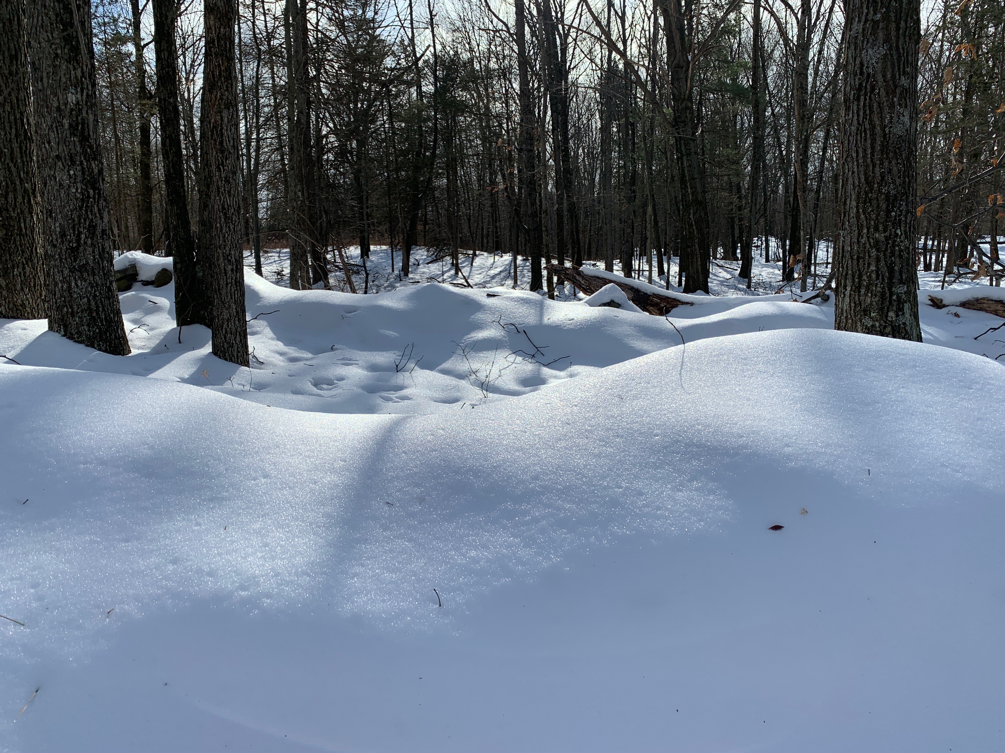 In this kind of cold, the walk is just movement, and–similar to my outlook on the summer’s heat–in the beginning of a walk, I am merely there to get in and out. Log the miles. I trudge up the steep incline slowly, but by the top I am warmed and can take off the balaclava, my head probably steaming in the stark winter light. I look for the squirrel who lives in a dead pine here and is often running around, but it’s not here. I hope the squirrel is deep in the middle of the pine, nestled in leaves and pine duff. I head home to my own hollowed out pine tree, feeling better for the brisk cold.