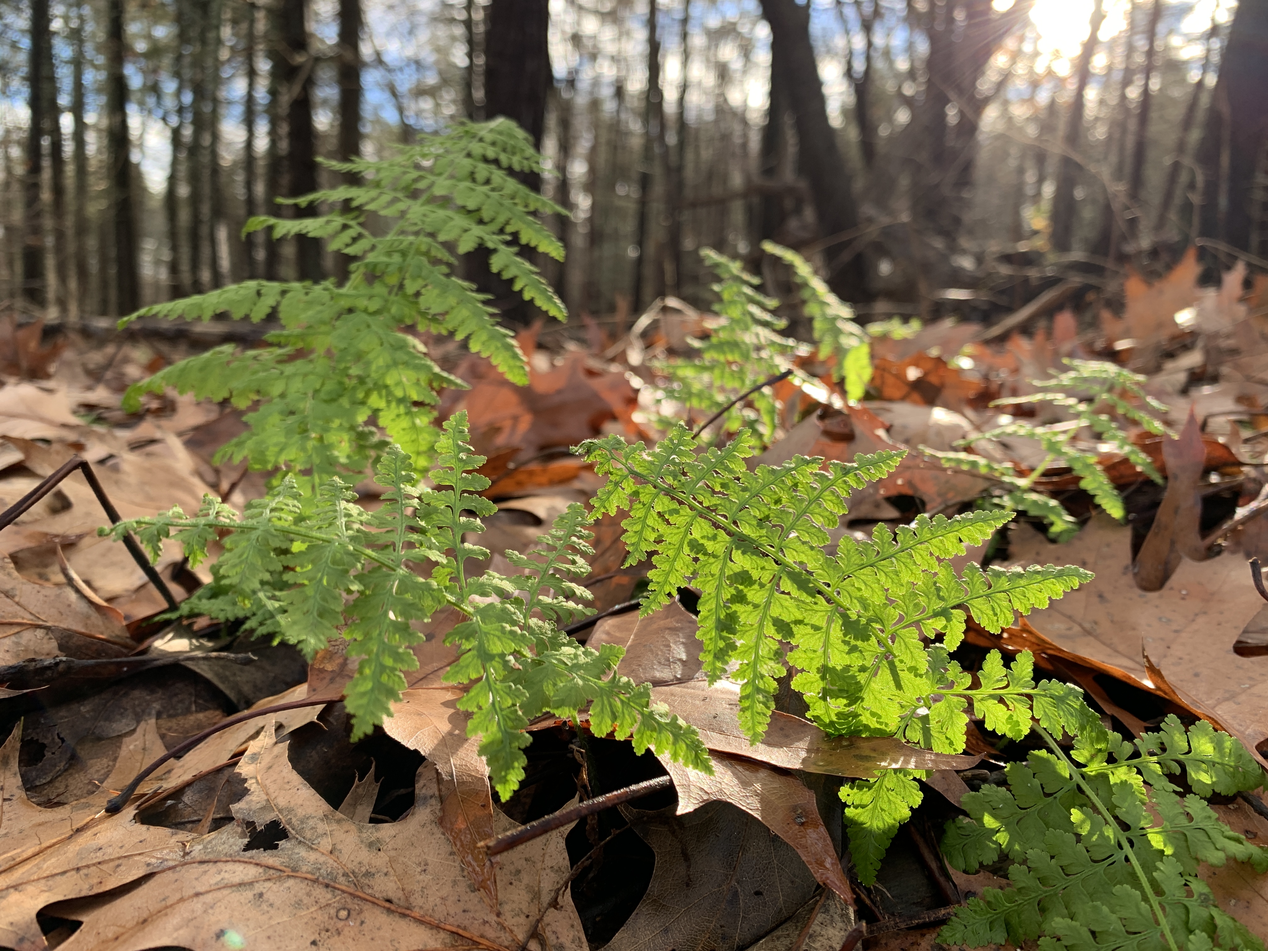 With these warm days, there has come a resurgence of bugs. I pulled a tick off my side the other day. Mosquitoes buzz around. Gnats float in clouds. Okay… There has always been the anomaly of a flower blooming–the errant forsythia or lilac bursting open. But the other day I found a whole patch of low bush blueberry bushes in full bloom. As a friend noted–fruit bearing flowers, that’s just wrong!! And the other day I began to notice new leaves. A whole patch of striped maple saplings with brand new delicate leaves. And a witch hazel fully leafed out, with dead leaves still attached. New hay-scented ferns pushing up out of the leaf litter. And even spring peepers peeping. Not one, but many.